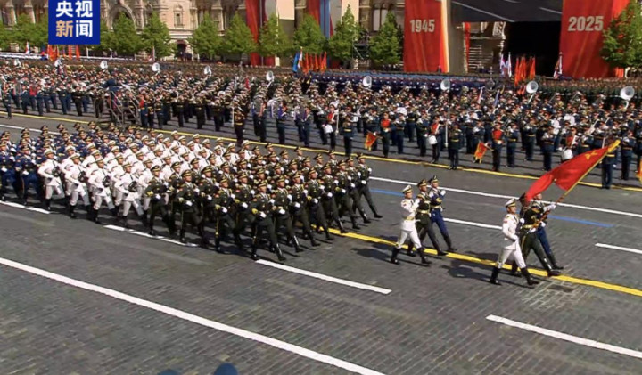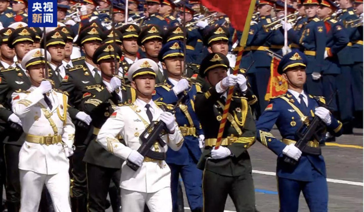 应俄罗斯国防部邀请,当地时间5月9日,中国人民解放军仪仗司礼大队仪仗分队119名官兵在莫斯科参加纪念苏联伟大卫国战争胜利80周年阅兵活动。
